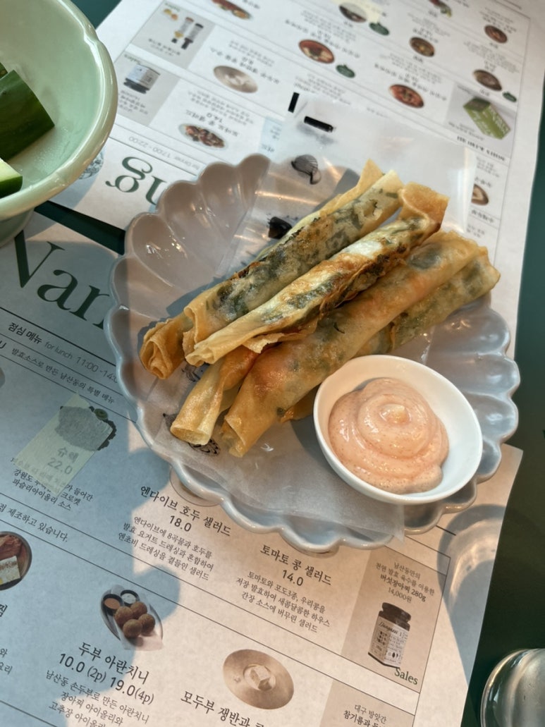 깻잎을 춘권피에 말아 튀긴 스프링 롤을
