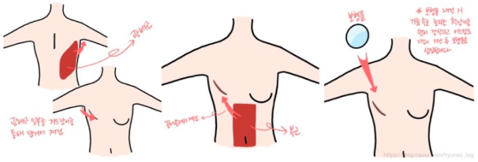 나의 경우를 먼저 이야기하자면 오른쪽 가슴을 전부 절제하고 등 근육으로 재건술을 했다.