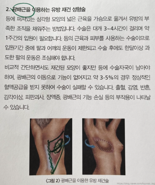재건술 방향에 대해 고민할 때는 광배근을 이용한 재건 성형술이 딱 마음에 들지는 않았는데.. (사실 전부 완전하게 마음에 드는 건 없었다.)