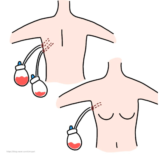 어쨌든 이 피주머니에 나오는 피의 색과 양을 계속 확인해야 했고 퇴원 전에 빼거나 상황에 따라서 퇴원할 때 달고 퇴원하고