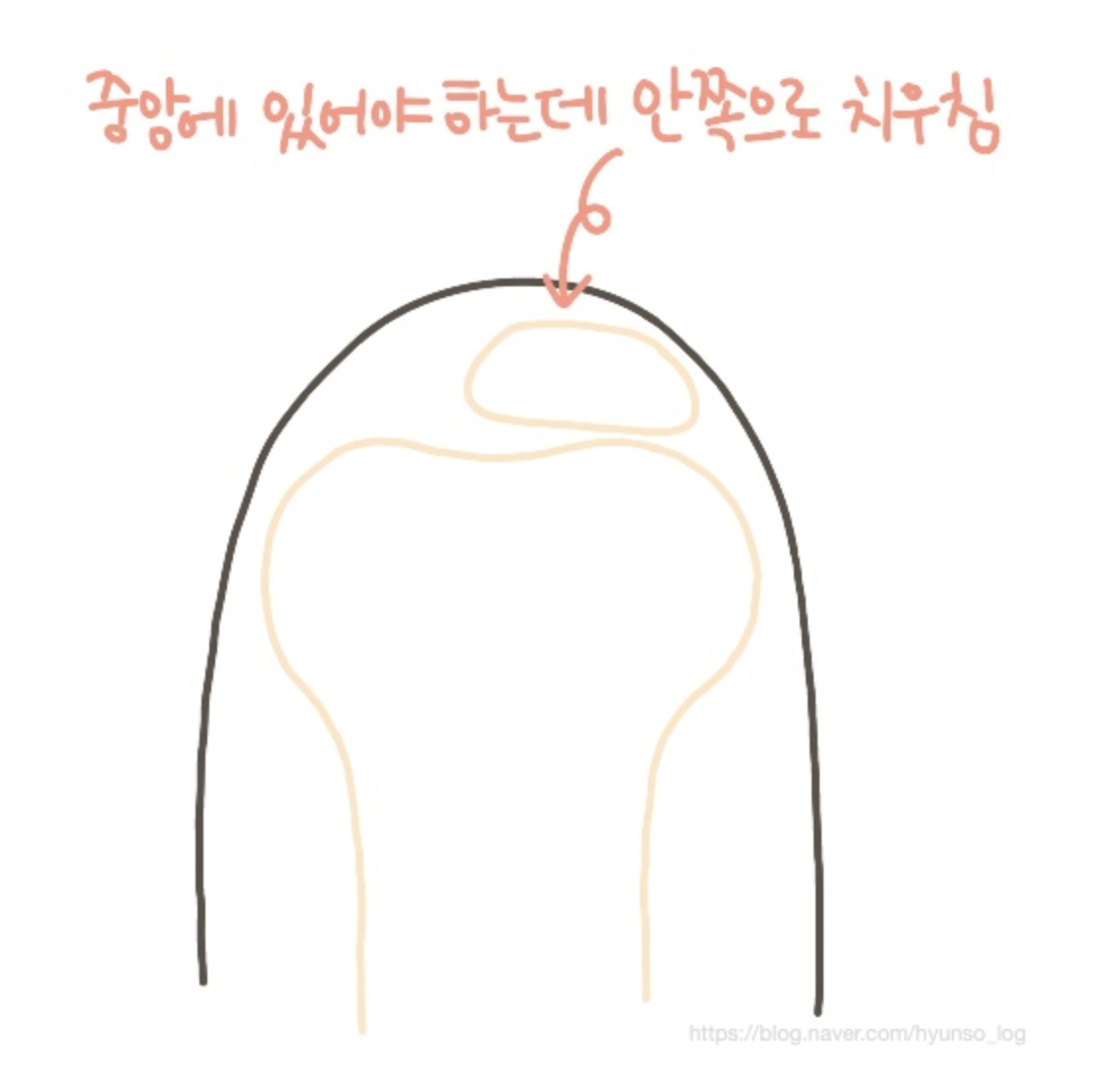 슬개고리 다리 안쪽으로 위치한 게 보였다.